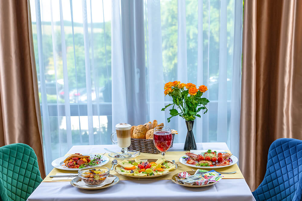 Tágas szállodai szobáink és apartmanházaink garantálják a tökéletes kényelmet. A főépületben található kétágyas erdőre és völgyre néző panorámás szobák hatalmas teraszokkal/erkélyekkel várják a pihenni vágyókat. Ugyanebben az épületben kapott helyet a mozgáskorlátozott vendégek részére kialakított erkélyes szoba, valamint családi apartmanunk is.